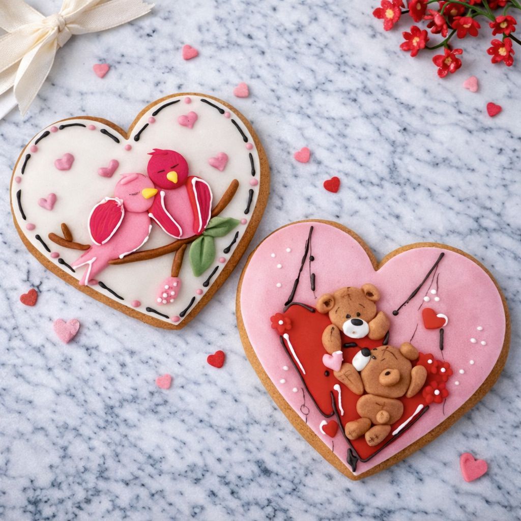Описание: Декорирани меденки със захарно тесто, 10 см височина